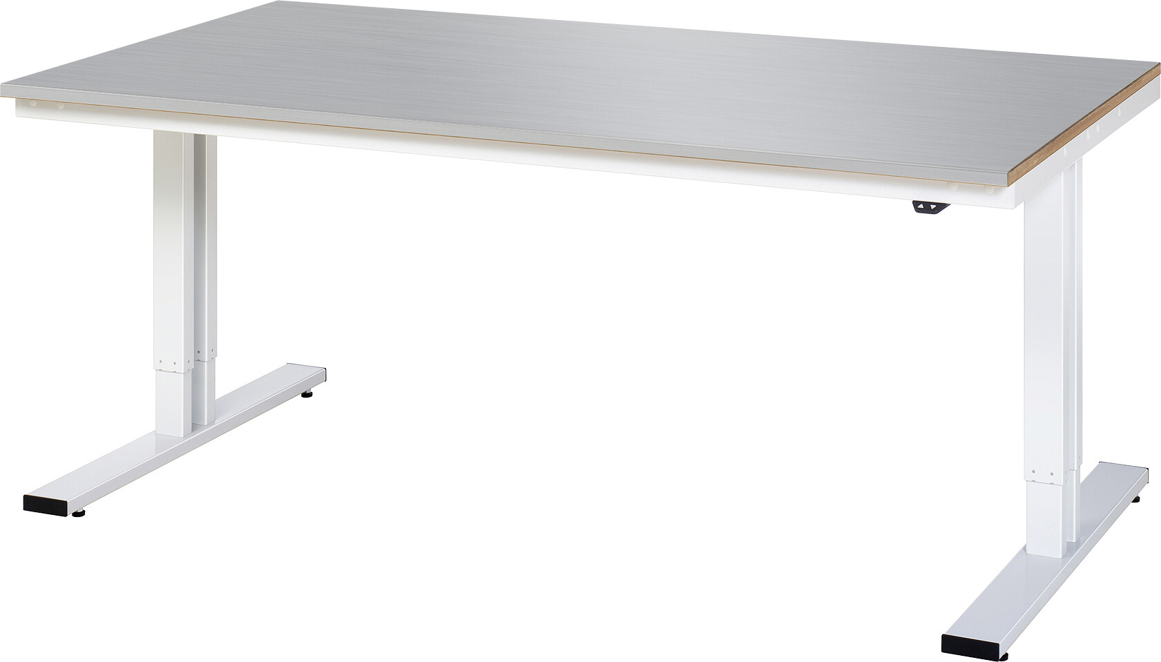 Werktisch Serie adlatus 300 B2000 x T1000 x H720-1120 mm Platte mit Edelstahlblechbelag 25 mm. Elektrische Verstellung mittels den 2 Doppelhubsäulen durch integrierten Linearantrieb. Pulverbeschichtung Flächenlast max. 300 kg Lieferung komplett montiert Qualitätsgarantie 5 Jahre Made in Germany