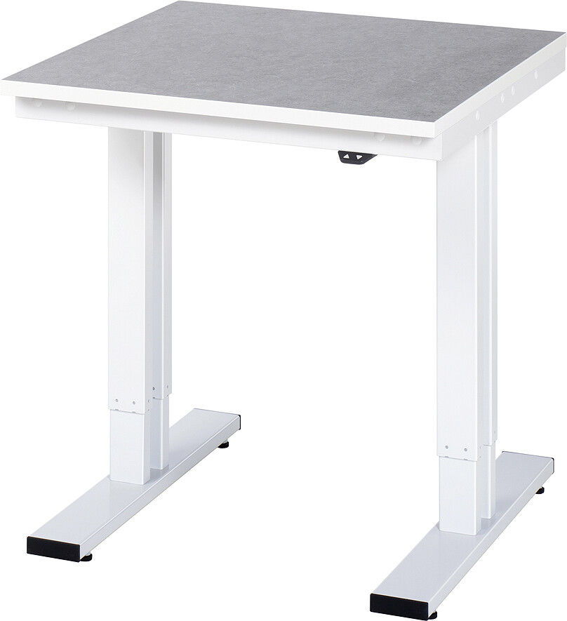 Werktisch Serie adlatus 300 B750 x T800 x H720-1120 mm Platte mit Linoleumbelag 25 mm. Elektrische Verstellung mittels den 2 Doppelhubsäulen durch integrierten Linearantrieb. Pulverbeschichtung Flächenlast max. 300 kg Lieferung komplett montiert Qualitätsgarantie 5 Jahre Made in Germany