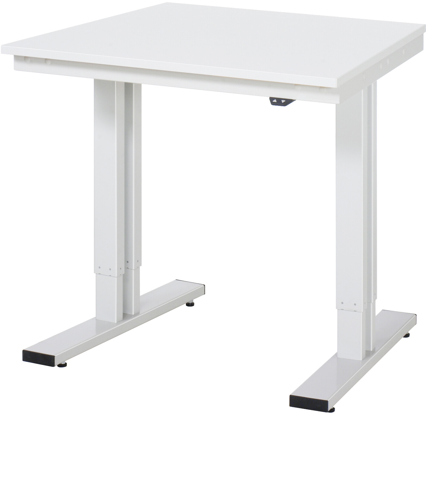 Werktisch Serie adlatus 300 B750 x T800 x H720-1120 mm EGB-Melaminharzbeschichtete-Platte 28 mm. Elektrische Verstellung mittels den 2 Doppelhubsäulen durch integrierten Linearantrieb Pulverbeschichtung Flächenlast max. 300 kg Lieferung komplett montiert Qualitätsgarantie 5 Jahre Made in Germany