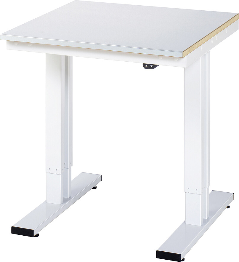 Werktisch Serie adlatus 300 B750 x T800 x H720-1120 mm Platte mit Stahlblechbelag 25 mm. Elektrische Verstellung mittels den 2 Doppelhubsäulen durch integrierten Linearantrieb. Pulverbeschichtung Flächenlast max. 300 kg Lieferung komplett montiert Qualitätsgarantie 5 Jahre Made in Germany