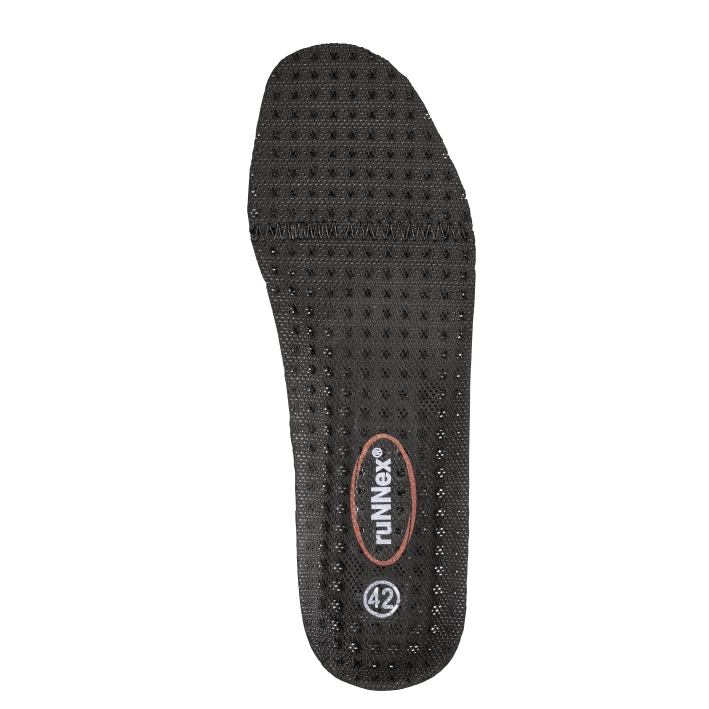 EVA mit perforiertem Textilbezug, antistatisch, hautfreundlich, feuchtigkeitsregulierend und atmungsaktiv Sohlenbezug: Textil (Black Mesh) Sohle: EVA Nähte: Antistatic Thread