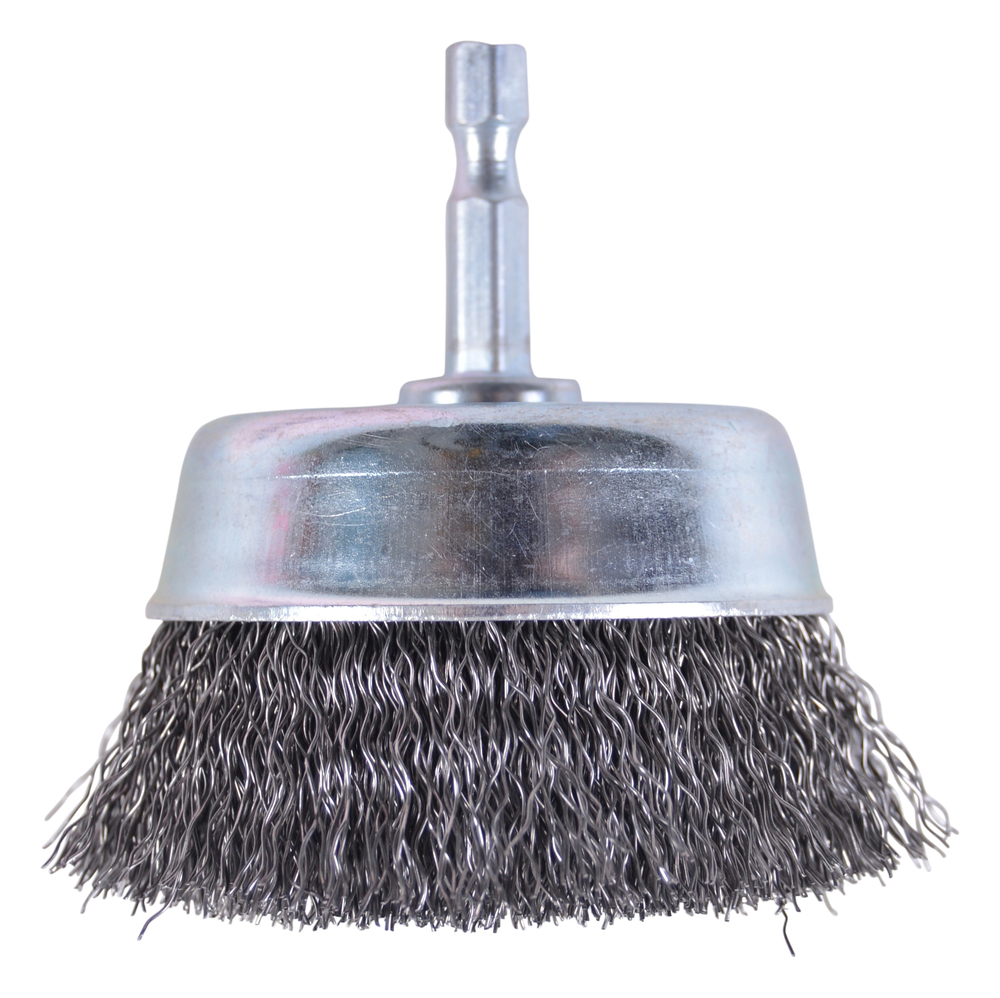 Topfbürste - Ø 75 mm • gewellt • verzinkter Stahl • 1/4"-Sechskant